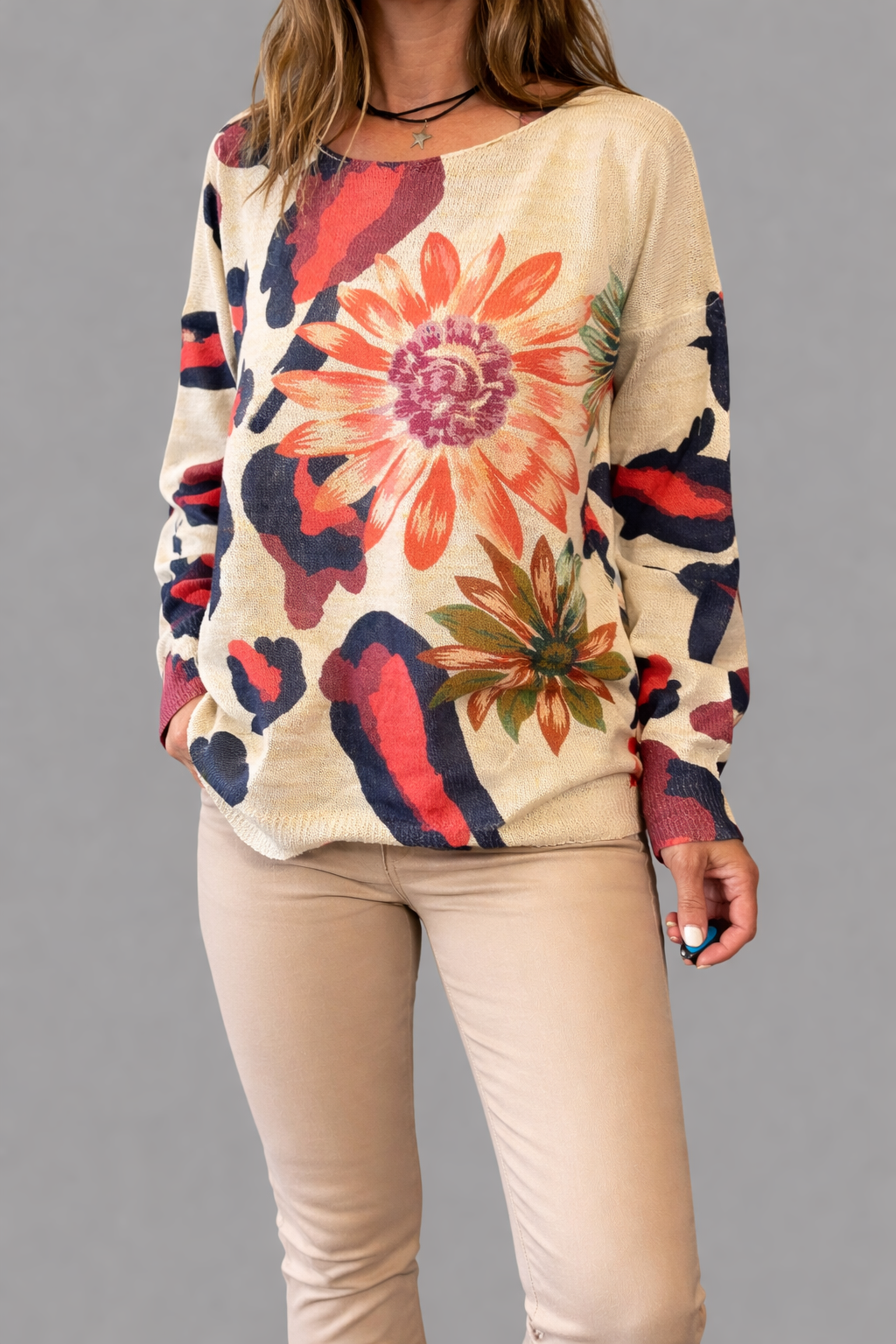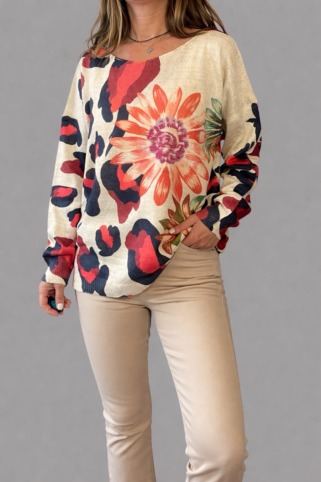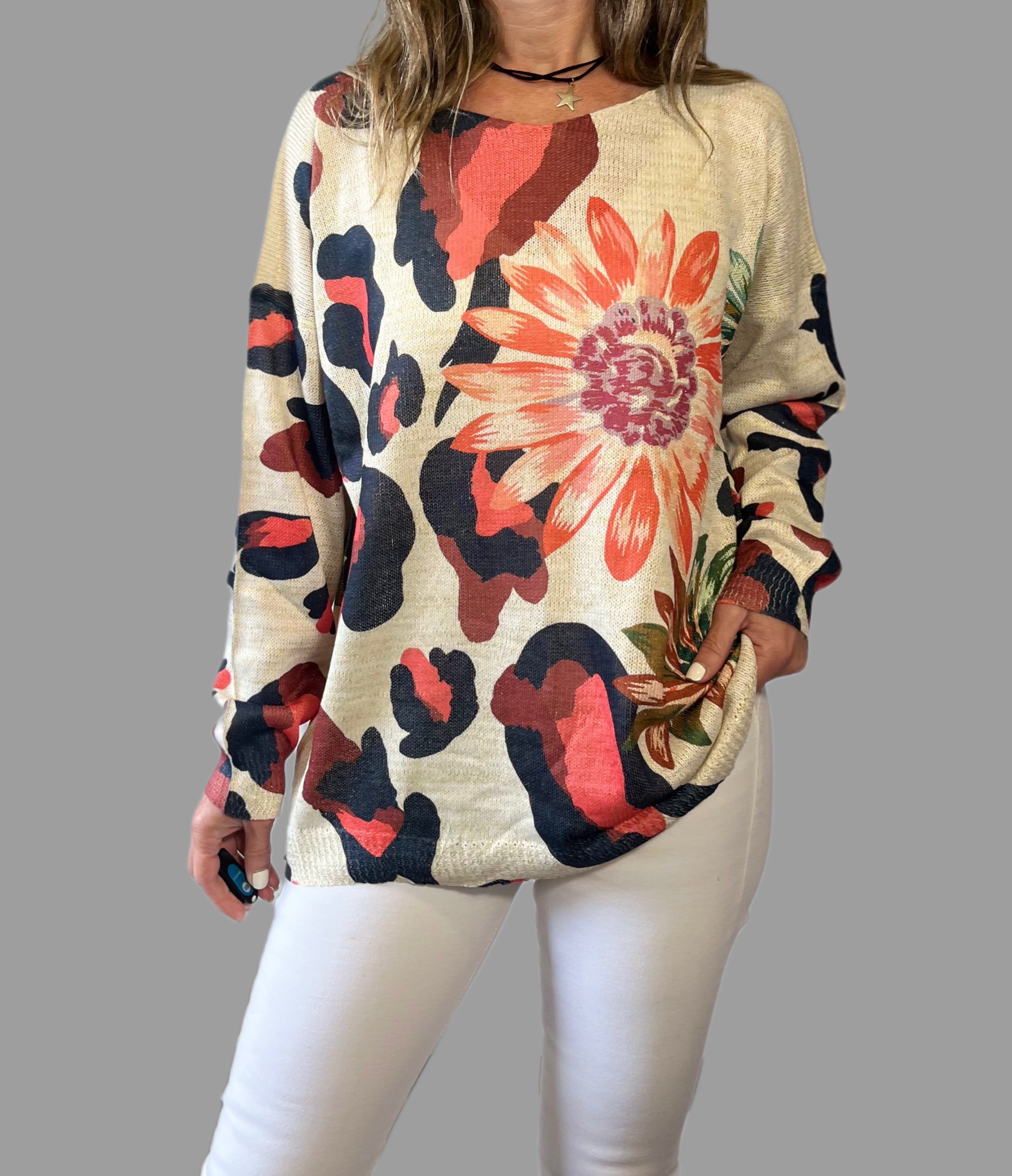 Sueter Print Flor Rojo